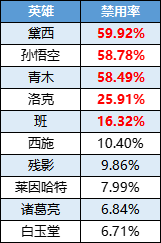 【禁用率前五】黛西、孙悟空、青木、洛克、班