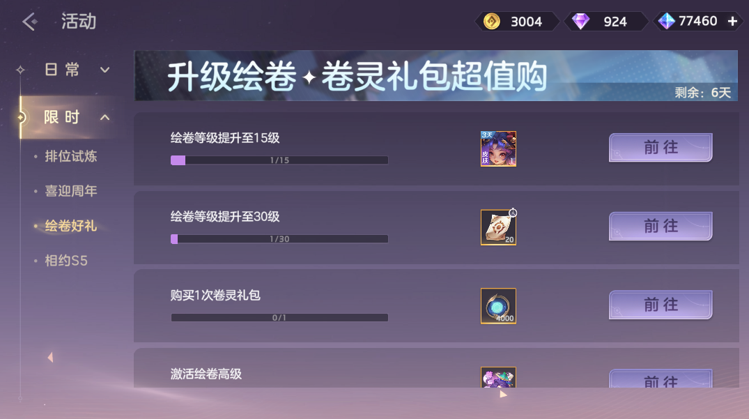新赛季绘卷上新,完成任务即可获得杨玉环·烛照玲珑3天体验卡、残卷*20、尊嘟假嘟表情、卷灵*4000奖励。