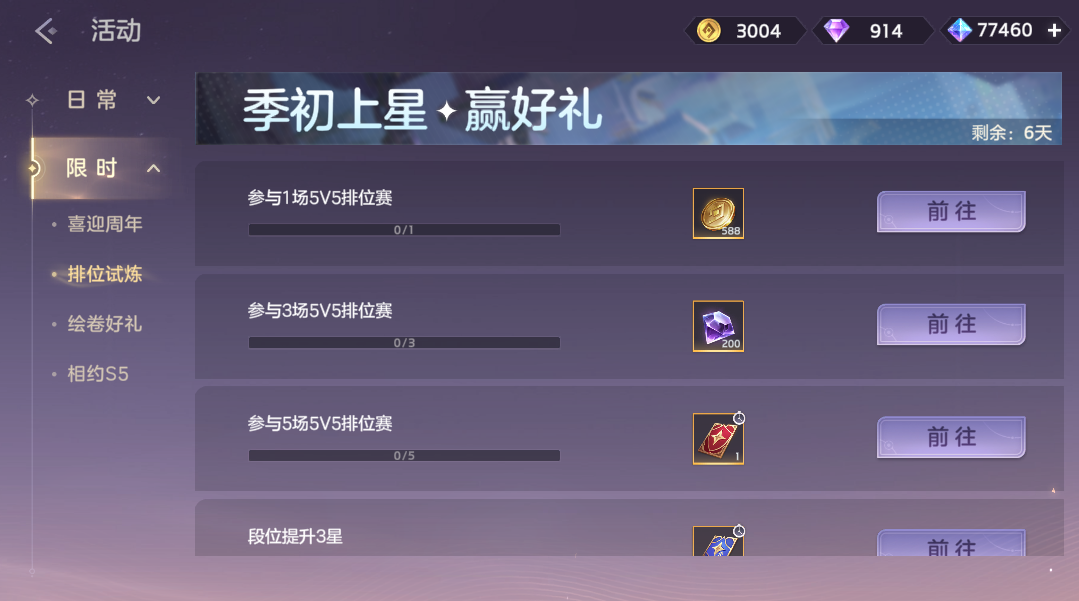 完成排位赛对局任务,可获得金币、钻石、排位加星卡、排位守护卡。