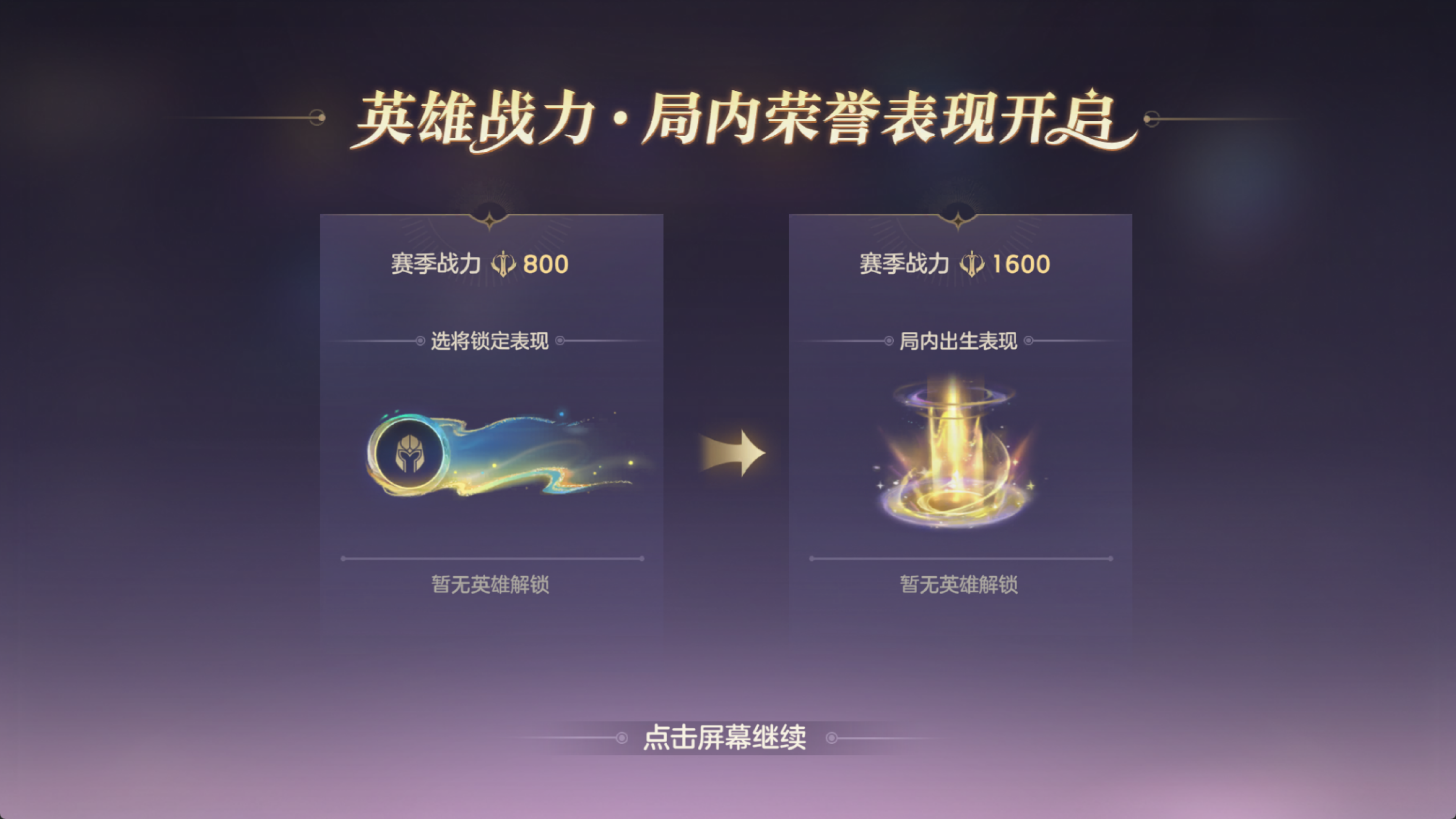 2)在赛季内,英雄最高战力达到800和1600分后,在匹配、排位等模式下使用该英雄时,可获得特殊选将表现和局内出生表现