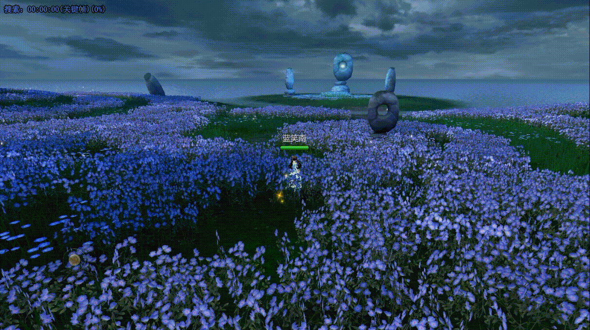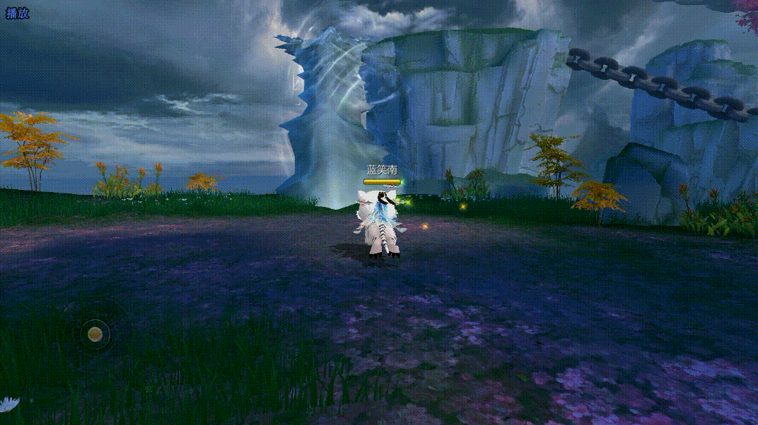 踏入这片新域,视线瞬间被无边无际的蓝紫色花海占据。花朵在微风中轻轻摇曳,一棵蓝紫色的参天古树虬曲而立,与远处海岸造型奇特的环形石块构成了一幅绝美画卷,这里无疑是整个莽苍山最绝佳的风景打卡点了吧!