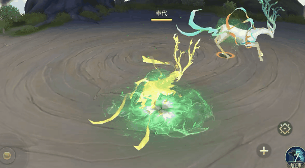 技能效果:圣灵鹿在场上召唤3个持续扩大的藤蔓圆环,藤曼将张开对在其上的玩家造成伤害,数秒后藤曼收缩击飞其上的所有玩家。