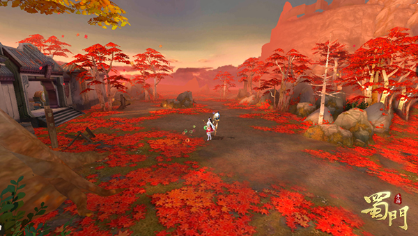 树树皆秋色,山山唯落辉,在《蜀门手游》中成都城西郊的景致乃是四季如秋,漫山的红枫将西郊村庄的庭院楼阁、野外的悠然小径,甚至是高地一隅都尽数染便,霜叶红于二月花。