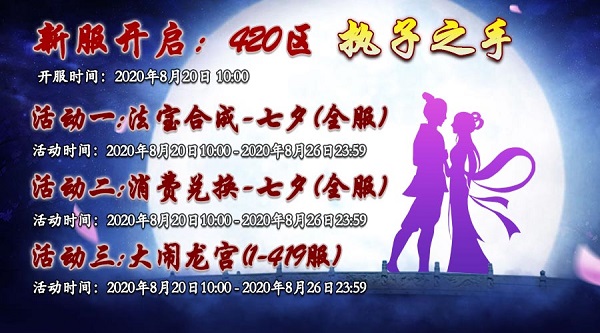 新服开启8月20日,周四上午10点开新区420区:执子之手。欢迎新玩家入驻!
