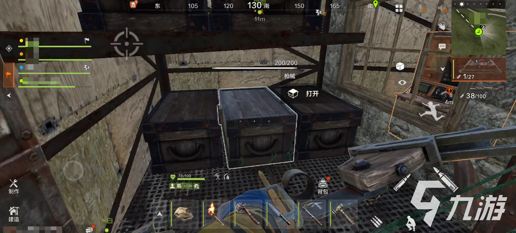 打好工具和生存基础后,别急着建大基地,现阶段应优先搜刮小型物资刷新点,如废弃超市、加油站等位置,这些地方会刷新食物、绷带等高级资源,是提升存活能力的重要据点。当背包资源攒得差不多了,务必抓紧造临时庇护所,结构不要太复杂,放几个箱子、领地柜、熔炉就够了。这样既能储存资源解锁科技,也不至于投入太多。