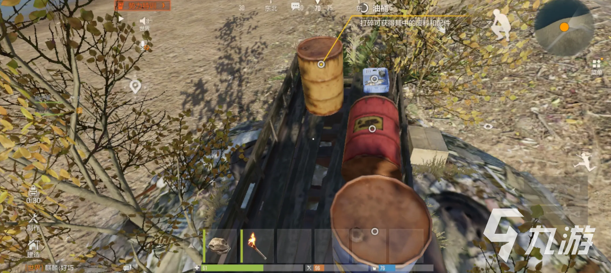 初入游戏,生存是首要任务。身于机遇与危机并存的荒岛之上,面对的是自然环境的考验、野兽的威胁,甚至还有其他玩家的偷袭。前期发育能否迅速进入良性循环,将决定你后续走得多远。一开始,别急着找落脚点,第一步就是“刨出第一桶金”。需要迅速弄到75点废料,这是你走向发展的关键资源。方法很简单,优先奔向马路或遗迹等物资点,使用木矛,它制造简单,而且攻击距离更远,比用石头更高效,猛刨那些散落的废弃桶子。别小看这些小桶子,哪怕每次收获不多,积少成多。