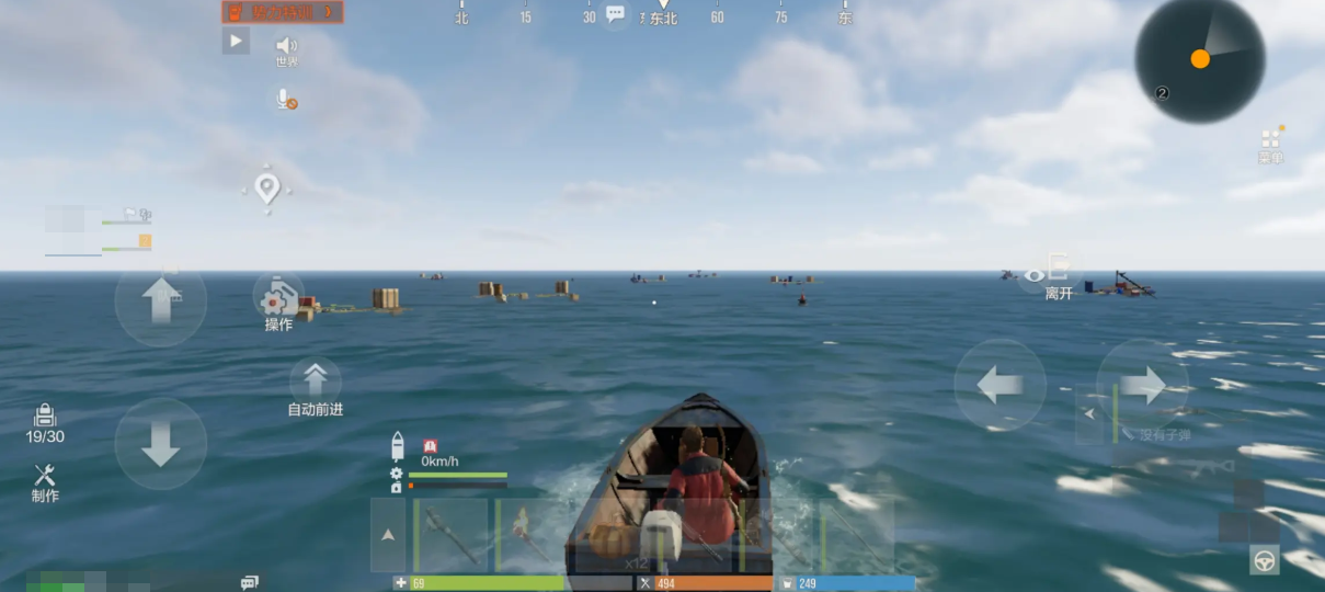 乘上马之后,别停下来,继续攒废料,目标设为125点。这时便到了第三步,投资未来,带着马往地图上的小渔村去(有锚的标志),花费废料购买小木船。一旦有了船,便能上海捕鱼、打捞漂流物资。海上漂浮的废料、零件和低脂油等资源不仅品种多、产出高,而且隐蔽性强、竞争少,绝对是稳步发育的优质之选。船不是万能的,还得配油。开船前务必收集足够的低脂油,无论是从油桶中获取,还是在物资点寻找,一定不能忽略。没有油,船只能在海面上漂浮,动弹不得,成了海上的活靶子,白买一艘船,收益全打水漂。