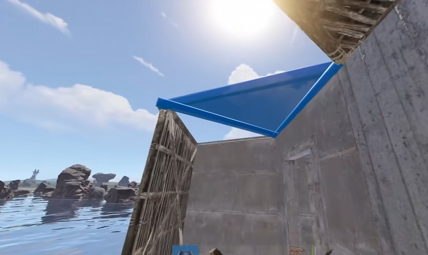 在建造用材的时候,如果材料充足,建议大家可以用金属墙壁或者是水泥墙壁,抗风性更强,还能抵御海水侵蚀。因为在海边经常会遇到台风,所以屋顶是用三角材料,三角的稳固性会更强。