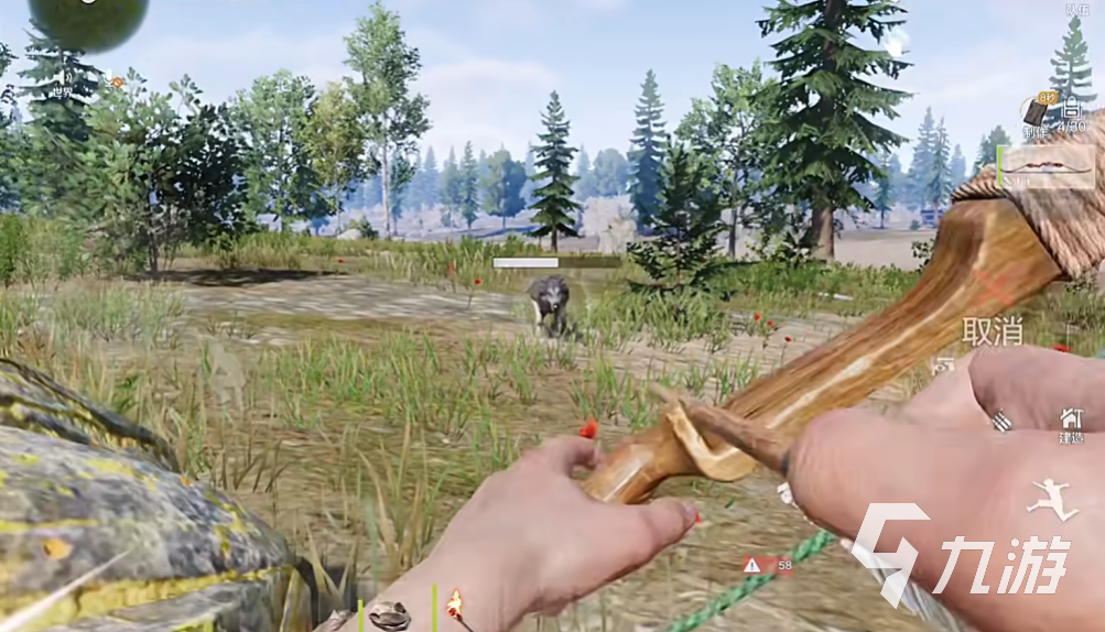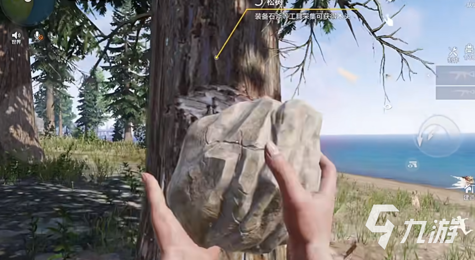 我进去了。里面的画面真好。还有里面的猎物也可以,我进去了,我第一时间捡了石头去打树所以我给他十分。