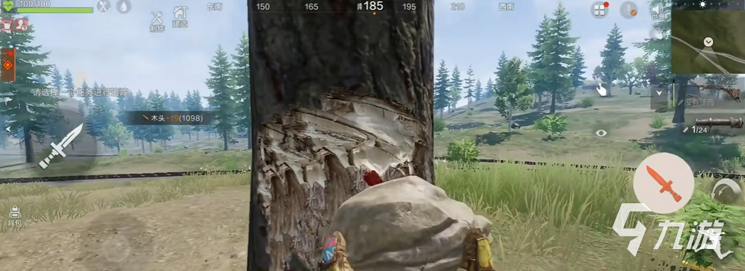 我进去了。里面的画面真好。还有里面的猎物也可以,我进去了,我第一时间捡了石头去打树所以我给他十分。