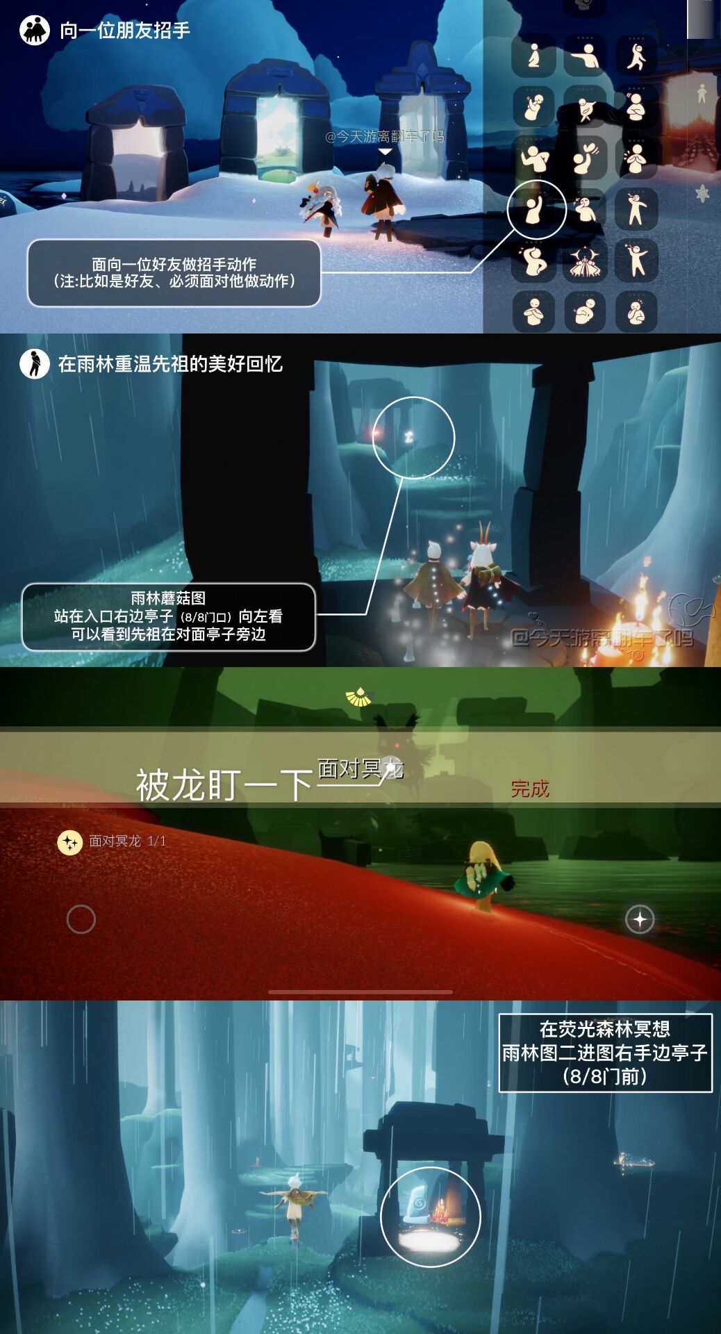 《光遇》游戏中每天的每日任务及大蜡烛的位置都不相同,玩家完成每日任务及收集大蜡烛都可以得到丰厚的兑换奖励,奖励可以用于兑换各种动作及道具,不过很多小伙伴不知道每日任务怎么做,又懒得自己去找大蜡烛的位置,我们汇总了每日任务的完成攻略以及蜡烛位置,一起来看看吧!