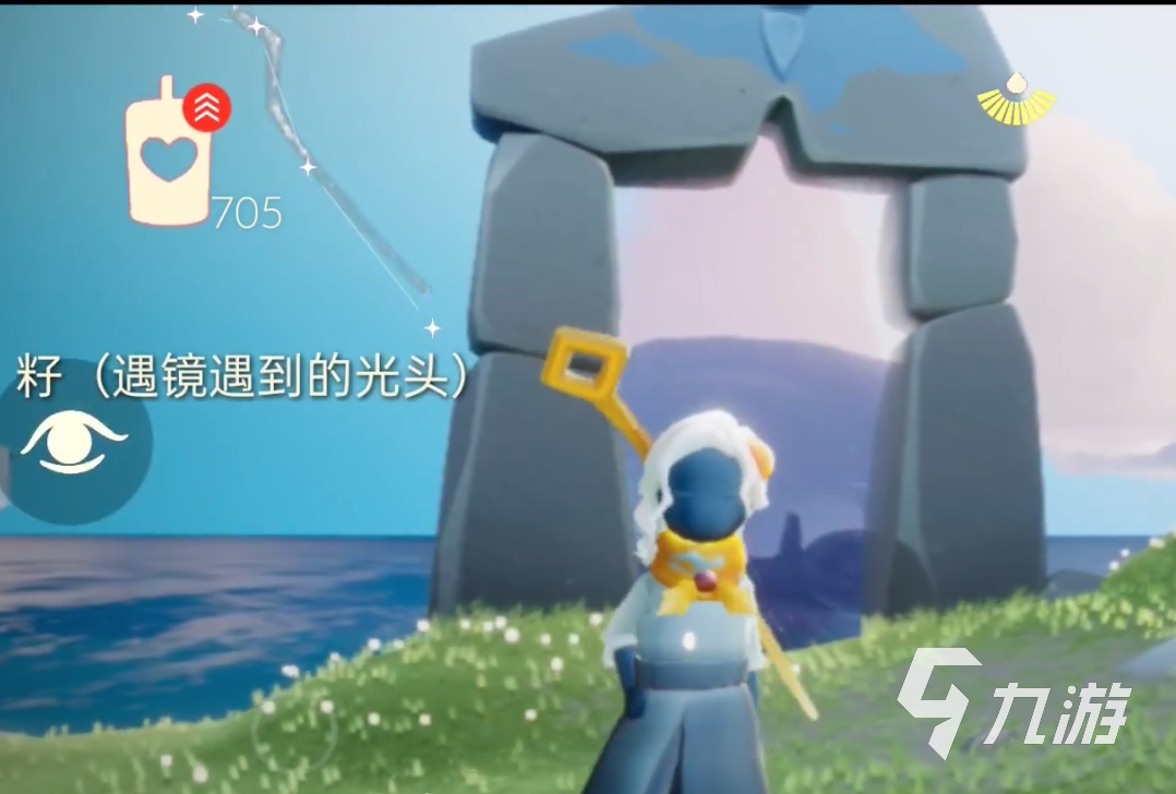玩家要想到达花苞发型先祖那里就必须先从遇境进入晨岛,晨岛有两个大石门,玩家们飞过石门就可以进入晨岛了,一定要从石门中穿过才行,从旁边飞过是进入不了晨岛的!