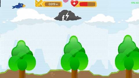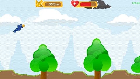 It's migration season for the blue jay. Can you help this poor bird to fly across sky and forest? Explore this colourful world and escort this bird to find its endless destiny, through the sky, forest, and stormy cloud. Stay alive and always consume berries to keep stamina. Avoid high trees and stormy cloud.How to play:Tap to fly upward.Don't touch ground, trees, and cloud.Be careful of your stamina, eat berries to replenish health.