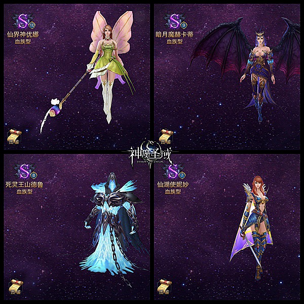一共四个,资质最高的是10分的仙界神优娜,排第二的是9分的暗月魔赫卡蒂,第三的是8分的死灵王山德鲁,第四的是7分的仙湖使妮妙。