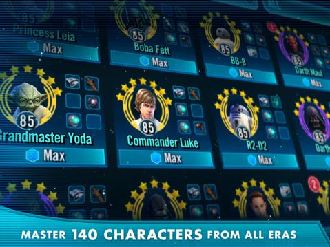 Live your Star Wars™ dreams as you fight with your favorite dark and light side heroes across iconic locations to become master of the galaxy. Create and customize your battle squad strategy using characters from every era, including champions from Star Wars™: The Rise of Skywalker, Star Wars™: The Last Jedi™, and Rogue One™: A Star Wars™ Story. Engage in turn-based RPG battles, master the Squad Arena, wield Luke Skywalker’s lightsaber, join a Guild with friends, and take your strategy to the next level! CREATE THE ULTIMATE TEAM Rebel leaders? Imperial stalwarts? You’re free to choose as you construct elite light and dark side teams while collecting heroes and other champion RPG characters from the Star Wars™ universe. Develop your strategy and make key moves in this epic RPG battle arena. Pick teammates with complementary abilities and go to war with an unbeatable squad! BECOME MASTER OF THE GALAXY Defeat opponents and rise to the top as you dominate the galactic hologames based in a far-off cantina. Improve your RPG combat strategy by upgrading your Star Wars™ heroes’ abilities as you play for even more powerful attacks and bigger wins. Then fight other players in Squad Cantina Battles, PvP Squad Arena, and Squad Tournaments to conquer the galaxy. PLAY WITH POWERFUL CHAMPIONS Make smart, tactical decisions and equip your Star Wars™ heroes with cool gear to enhance their damage and improve your RPG strategy. Unlock fun abilities to make your champion team unstoppable as you unleash your lightsaber in Luke Skywalker’s Destined Strike, destroy enemies with Darth Vader’s Force Crush, and outsmart your opponents with Young Han Solo’s Trick Shot. ENGAGE IN EPIC STARSHIP BATTLES Collect iconic Star Wars™ starships, including the Millennium Falcon, and massive Capital Ships, like Admiral Ackbar’s Home One, to construct your champion war fleets. Keep your cool in fast-paced RPG-style space combat, deploy reinforcements, and turn the tide of battle with the right strategy. Face fun new challenges and compete in the Fleet Arena to test your prowess. Gather unique upgrade materials for characters, available only as rewards for starship battles. Each starship has its own squad and strategy, adding special skills to individual starships. Recruit powerful pilots to create the strongest armada in the galaxy! RISE TO THE TOP IN A GUILD Grab your lightsaber and enter the Raid arena with friends. Fight against bosses like the Rancor, AAT Tank, and the Sith Triumvirate when you create a customizable Guild. Collaborate to form a strategy with your Guild in Territory Battles where members unleash their entire squad of champion characters and starships against a progressively evolving battlefield. Show your dominance in this RPG when you face off in strategy-based battles against other Guilds to conquer territories and top global Guild leaderboards in Territory Wars. Terms of Service: http://terms.ea.com Privacy and Cookie Policy: http://privacy.ea.com Game EULA: http://tos.ea.com/legalapp/mobileeula/US/en/OTHER/ Visit http://help.ea.com/en/star-wars-galaxy-heroes/star-wars-galaxy-heroes/ for assistance or inquiries. EA may retire online features after 30 days’ notice posted on www.ea.com/1/servic//e-updates.