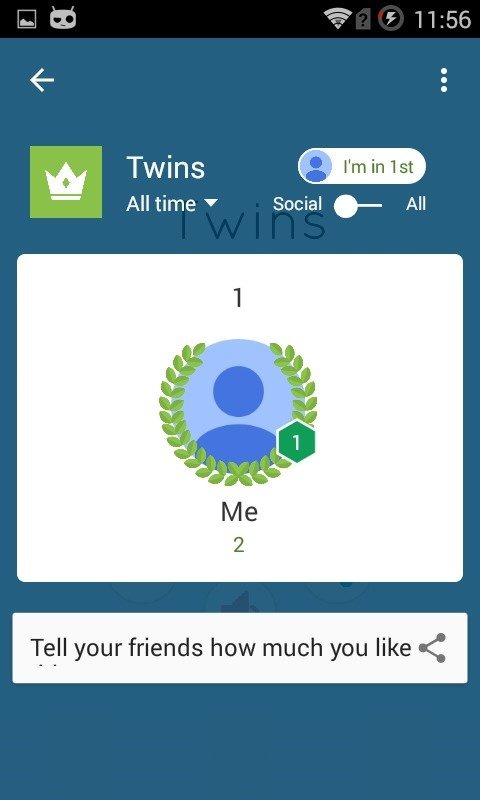 Twins is a game where you will have to match each ball color with its respective color in the balls of the center of the screen just by tapping on the screen. The aim of the player is to rotate the center balls in order to match the colors of the balls.Every week, you will have to accomplish a new Level. Enter a meerising trance of co-dependence in Twins.Challenge your friends using this app on Google Play Games.Enjoy it!
