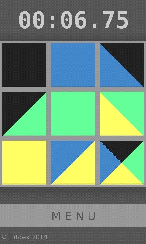 [This is the free version of the game, buy the pro version to access additional features such as saved statistics]SwitchTile is a micro puzzler for speed-solving enthusiasts and puzzle-lovers alike[Instructions]Slide the columns and rows of the grid to shift the puzzle into a completed state. Press the ‘Menu’ button to show the game’s menu. Scramble or reset the board using the corresponding buttons in the menu. Use the ‘Timed Solve’ mode to time yourself as you solve the puzzle. Change the size of the game’s grid using the ‘Board Size’ button.[Features]+ No adverts+ No in app purchases (IAPs)+ Small app size+ Multiple board sizes (3x3, 4x4, 5x5)+ Accurate timer+ Low battery usage+ Customisable colours+ Default board size option+ Hours of fun :)Keep practising to get faster and faster!