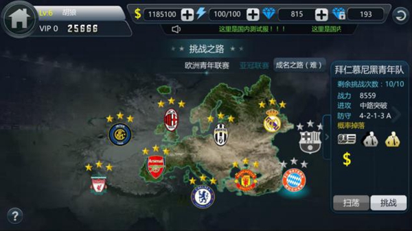 《实战十一人》的赛事分为剧情向的人机PK以及竞技向的玩家匹配切磋。其中人机PK将同步西甲、欧冠等赛事,因此用户可率队直面切尔西、利物浦等骁骑,试试你的Team锋锐。在这个模式下,前期考虑到用户心理,只需稍作升级,即可轻松获得多次两位数比数净胜。