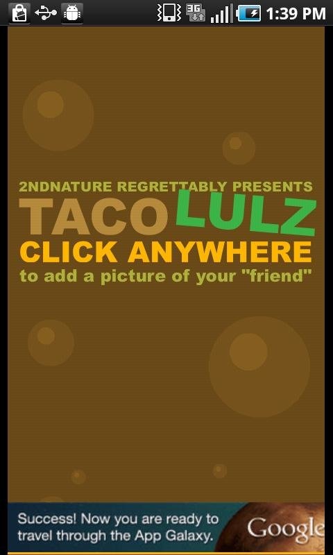 Have you ever wanted to hit a bully in the face with a juicy mexican food product? How about your annoying brother, or sister? Did Mom just ask you to clean your room? Tell her "no problem" but take a picture of her proud face so you can throw tacos at it all day.Controls:Touch to throw tacoPinch to rotate and zoom