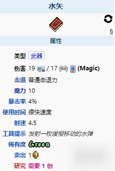 泰拉瑞亚水矢怎么样?作为游戏中,困难模式之前的武器,想必还有很多玩家们不是很了解,那么接下来就带给各位玩家们泰拉瑞亚水矢图鉴介绍,不要错过。