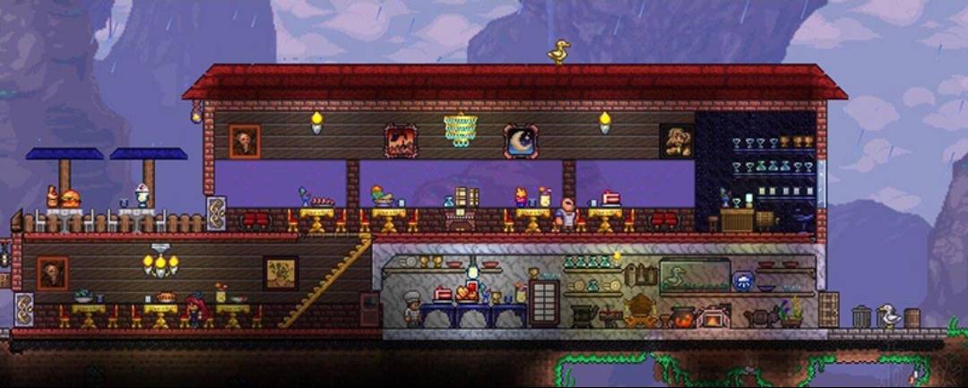 挖掘,战斗,探索,建造!在这个动感十足的冒险游戏里没有什么是不可能的。世界是你的画布,地面是你的油漆。拿起你的工具出发!制造武器和各种各样的敌人作战。前往地下寻找配件,金钱,以及其他有用的东西。收集资源创造你的世界所需要的一切。建造一栋房子,一个堡垒,甚至是一座城堡。人们会搬到那里居住,而或许他们还会卖给你不同的商品来协助你完成旅程。但要注意,那有很多挑战在等着你……你能完成任务吗?【1.4.4版本“爱的付出”已更新】新版本重要内容:-新增三个种子地图【真的没有陷阱】、【颠倒世界】、【缝合世界】-新增装备预设,支持3套装备组灵活切换-虚空袋重做-大部分物品的存储上限提升到9999!-新增8个史莱姆城镇宠物-新增珊瑚礁块和白蜡木系列家具-新增大量道具-对武器、效果、敌怪、事件的大量调整非常感谢这段时间以来,每一位参与了测试服体验,并为我们提供了反馈的玩家们,在接下来的时间里,我们会继续优化新版本的游戏体验。【心动版本的泰拉瑞亚】- 支持8人联机(联机功能终于能还给大家了)- 国内官方服务器加持 & 匹配功能 (没有朋友555也能找人一起游戏)- 买断制(拒绝一刀999)- 内置了完整的游戏Wiki(“方便知道自己该干嘛”)- 云存档 & 成就功能【游戏特色】- 沙盒游戏- 随机生成的世界- 免费的内容更新你的双手能缔造的快乐,比你想的多得多!