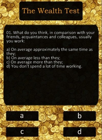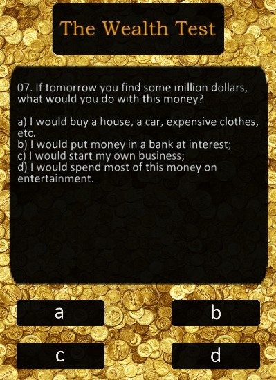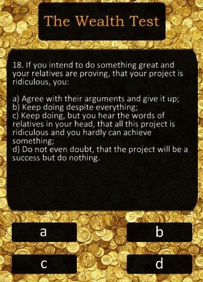 Most people want to live well, to have enough money, and even better - to be rich. There is, however, a nuance: many people desire have a large amount of money and to possess wealth. Well, will somebody refuse to have a good life? And wealth, for some reason, isn't given to everybody. Maybe they don't actually want to possess "big money"? Just the opposite! Poor people would love to become rich, but years go by and there is still no wealth.Maybe they want it in a wrong way or do something wrong? Maybe they rather repel it than attract? It's far more likely. Take this test to clarify this question for yourself and find out, what chance you have to become a rich person.