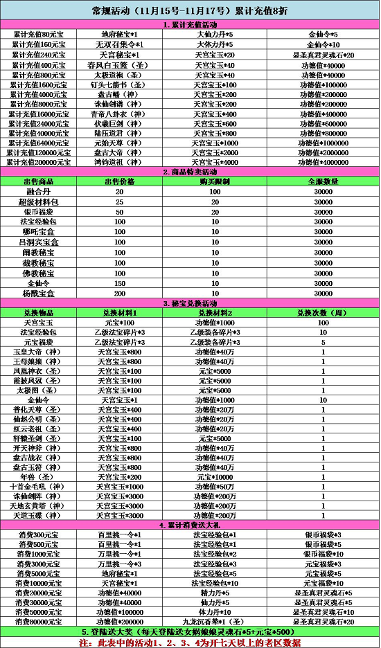 《全民神仙》11.15-17常规活动