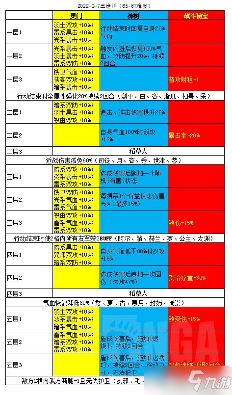 天地劫幽城再临手游2022年3月7日至13日的三途川65-67难度词缀表