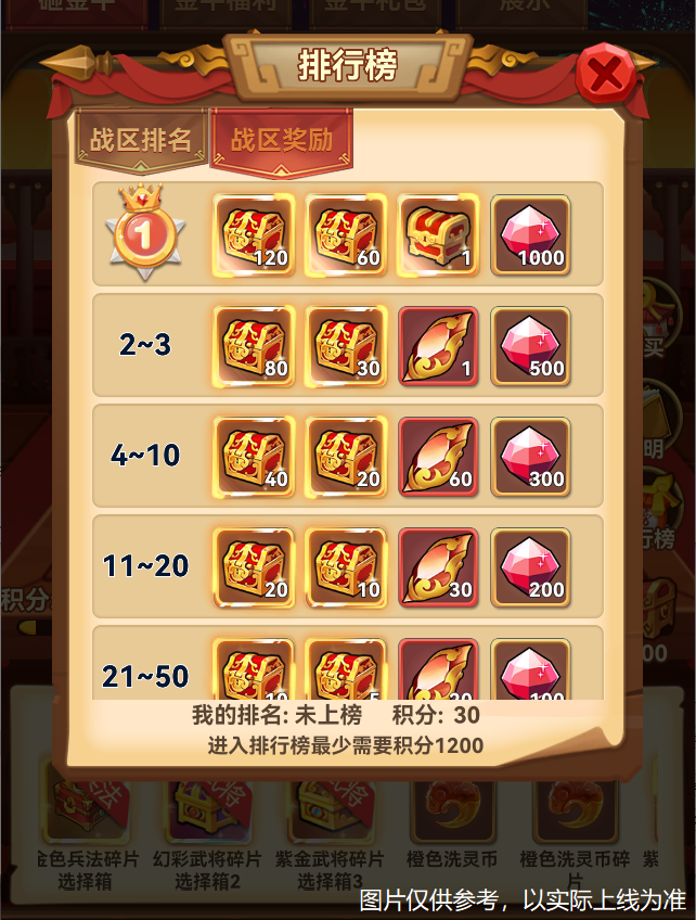 3.活动积分达到一定分数可进入跨区排行榜,活动结束后会根据积分发放排行榜奖励。