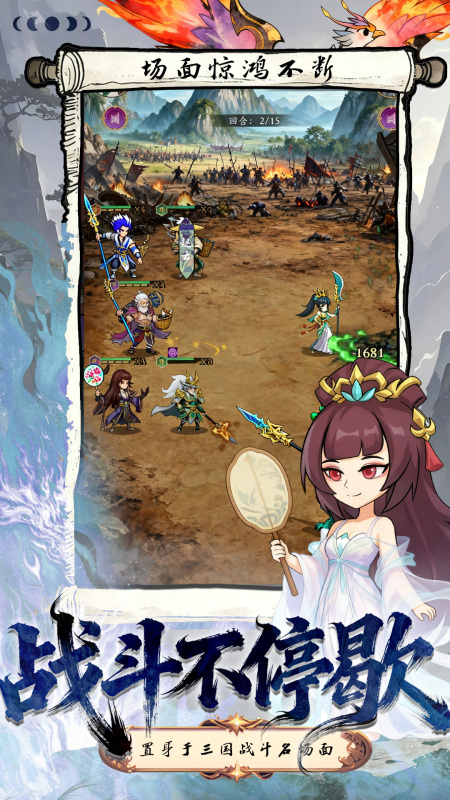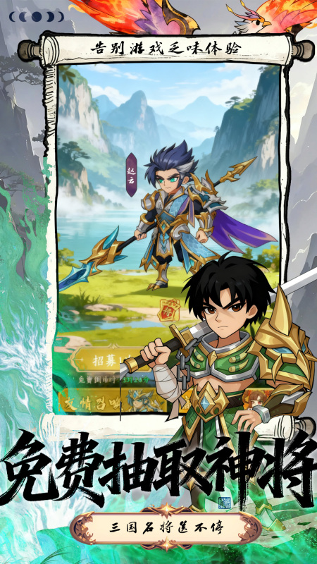 这是一款以三国时代为背景的集卡牌收集、策略布阵、军团争霸于一体的沉浸式战略手游。在这里,你将化身一方诸侯,招募名将、运筹帷幄、征战四方,亲历波澜壮阔的三国史诗,体验智谋与热血的终极对决!从枭雄曹操到仁德刘备,从战神吕布到智圣诸葛亮……史上群雄化身精美卡牌,每位武将均拥有符合史实特色的技能与天赋。收集、培养你的专属梦之队,打造无坚不摧的豪华阵容!快来招募名将、布局沙场,书写属于你的三国传奇吧!​