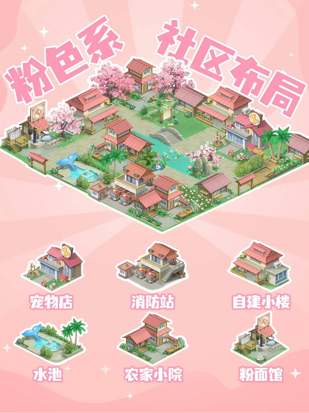 粉色系|软妹专属甜妹社区樱花树开满整个社区!宠物店 + 粉面馆 + 小池塘,连消防站都变萌了,住这儿每天都是少女心冒泡的一天~