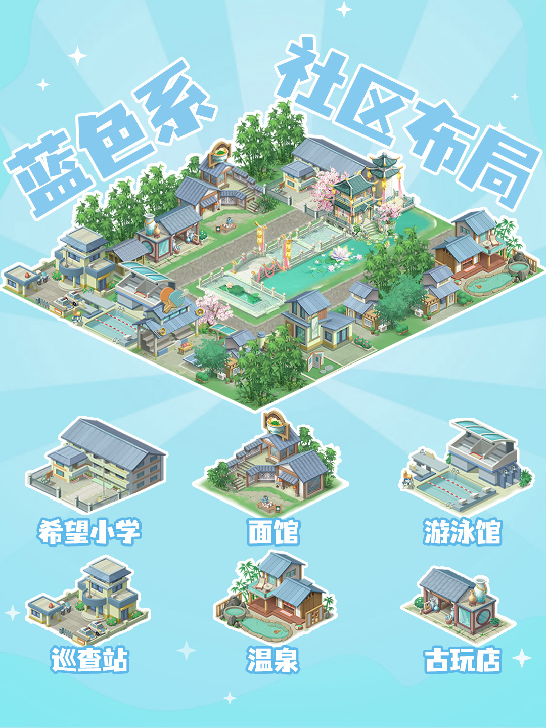 蓝色系|江南风雅致小镇青瓦、荷塘、温泉 + 古色古香的面馆,搭配希望小学和游泳馆,清新又有氛围感,像住在水墨画里~