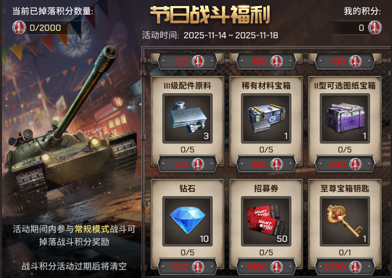 活动期间,参与常规模式战斗可掉落战斗积分奖励,积分可用来兑换珍贵材料与道具等。注意:战斗积分活动过期将被清空,请指挥官们注意活动时间