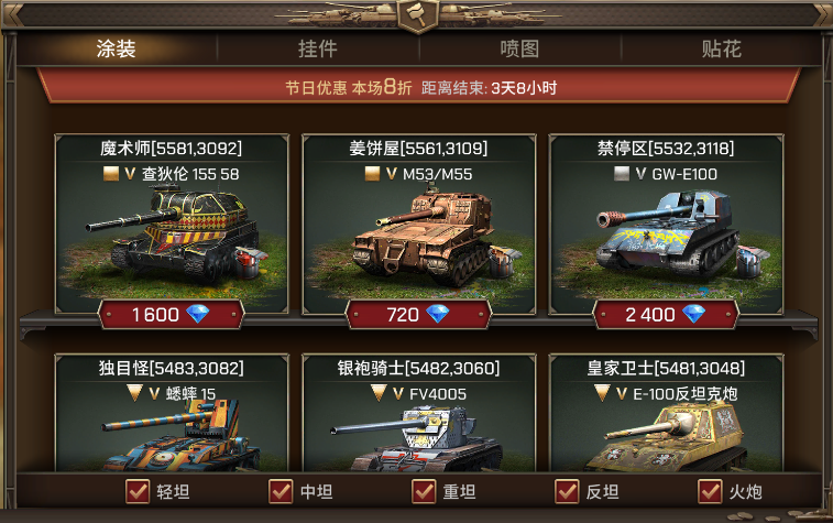 为了回馈广大指挥官的厚爱,我们特别推出了超值涂装折扣活动。AMX M4(1945)坦克专属涂装【时光征服】 最低半价获取!希望大家可以在战场上秀出它的风采。