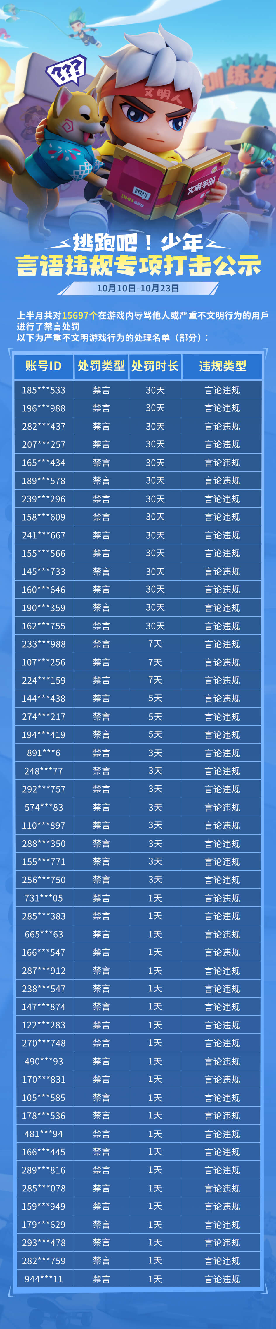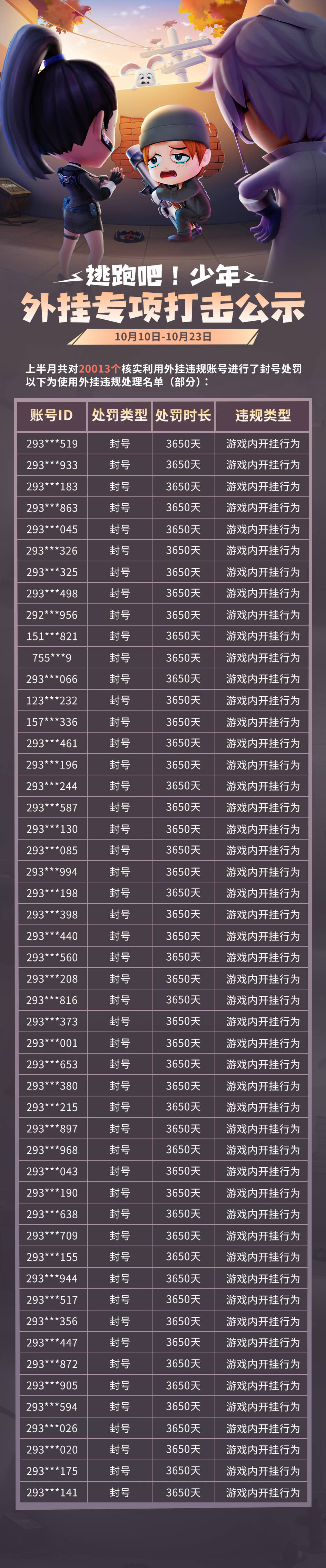 《逃跑吧!少年》游戏安全处罚公示回归-10月