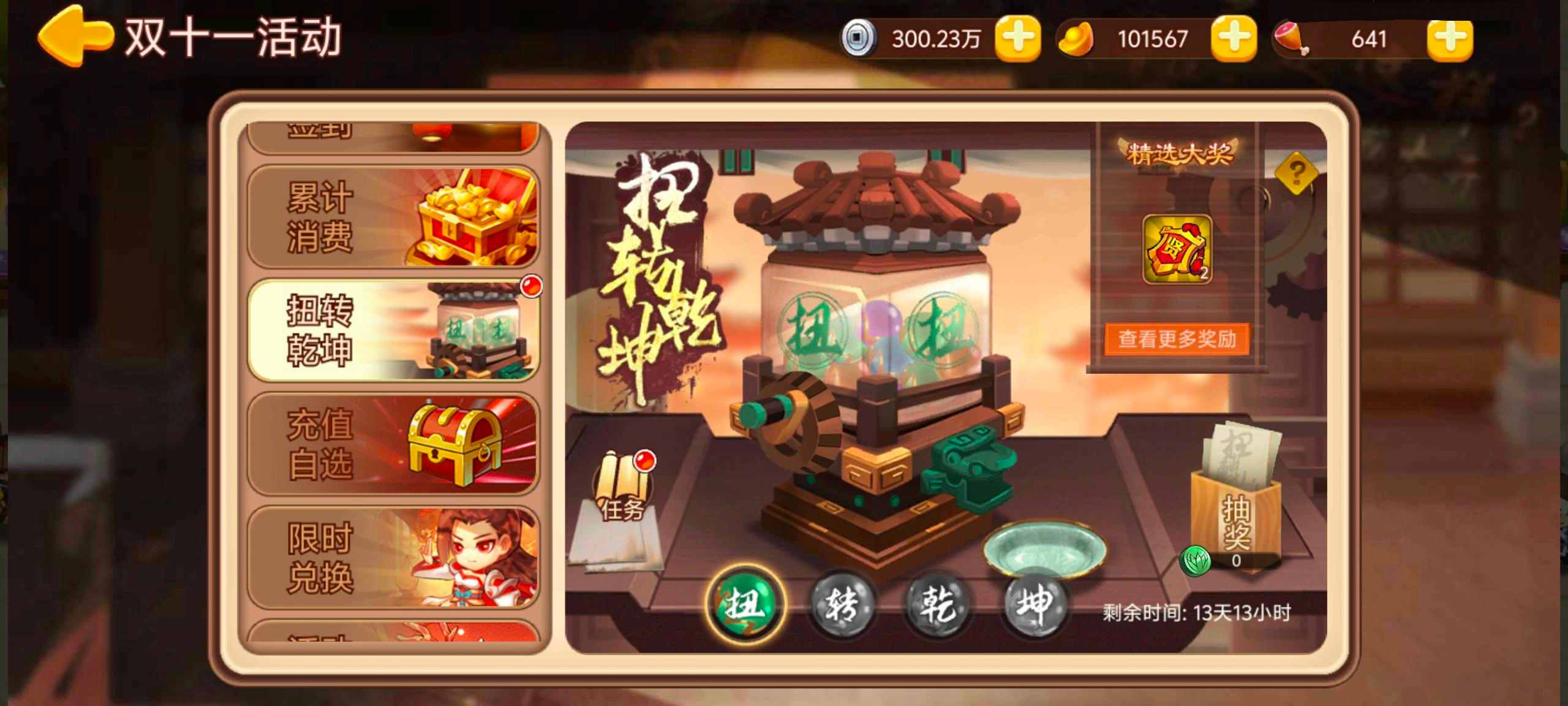活动内容:活动期间开启扭转乾坤活动,消耗扭蛋币抽取大奖。扭蛋币通过每日任务获得。