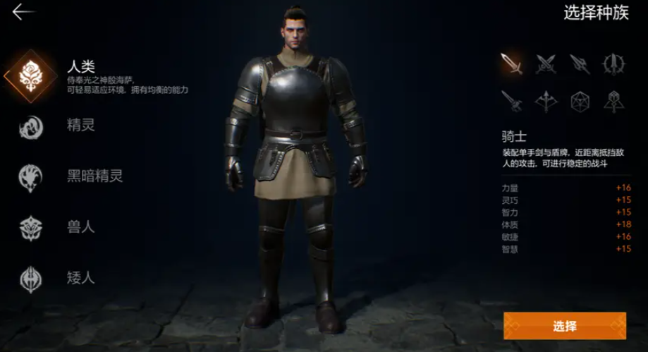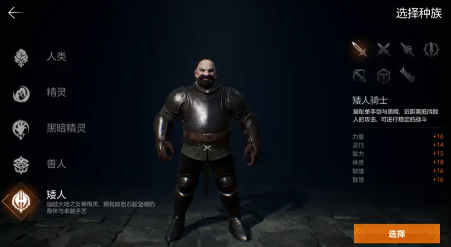 同时因前排肉盾的定位,团队狩猎、战盟对抗等多种团队作战玩法也是少不了他,作为团队不可或缺的一员很推荐新手去选,不过需要注意使用单手剑选择不同种族会带有一定差异,像是精灵会有更高的防御加成,人类在攻防上比较均衡,兽人在体力和力量上更有优势,大家要根据自己想要的来合理选择。