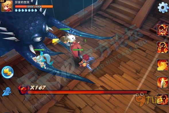 进入合虚岛副本后,玩家往前走就能见到萌萌的世界BOSS了,大家可以携带身上3个元魂一起战斗,世界BOSS的血量全服共享,每战斗几个回合,BOSS钻回海里后,就会掉落宝箱,打开宝箱可以获得