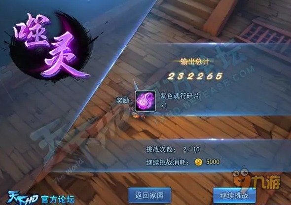 与世界boss激战一段时间战斗后,不管BOSS是否已经死亡,副本都会结束,大家都可以收获到紫色魂装碎片等奖励,出了合虚岛副本以后还可以继续进去战斗,每位玩家每天能进10次副本