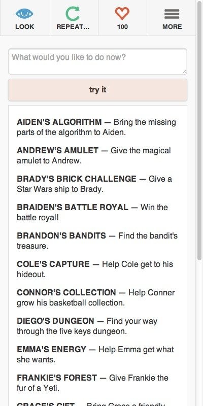 txtGame is a free-roaming, text-only, game of imagination.You are the main character. Your goal is to help all the kids throughout the game and complete the mis...