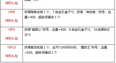 活动十二:充值送VIP特权专属礼包