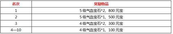 活动内容:至活动截止时,本服战斗力排行榜前十名的玩家,将获得丰厚的奖励。