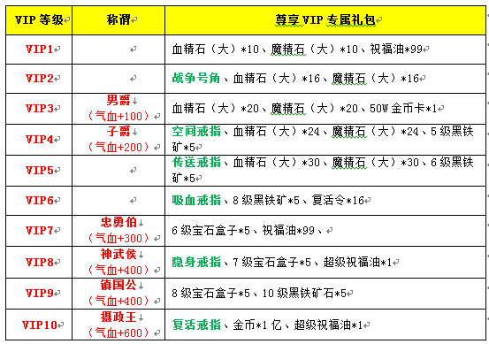 活动十一:充值送VIP特权专属礼包