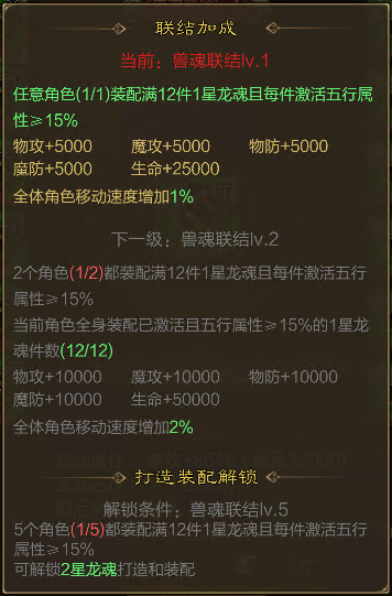 装配任意龙魂后,移除所有角色的<兽魂套装加成>,改成更为强力的<兽魂联结加成>!