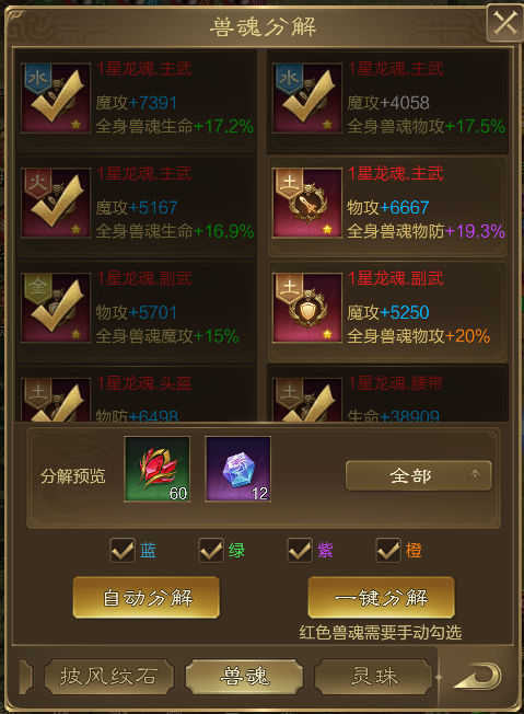 龙魂还可以分解,回收<兽魂结晶>后接着继续打造,不打出极品龙魂咱不罢休!