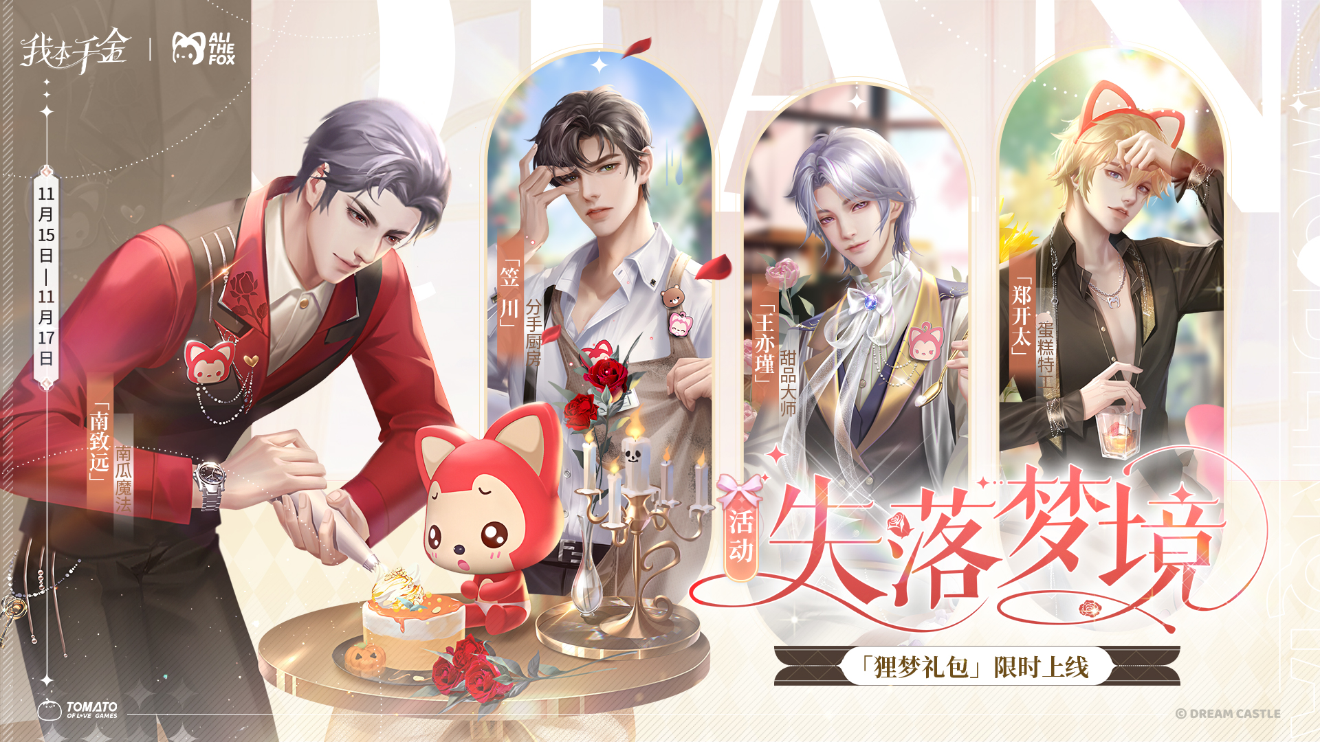 通过使用美梦唱片机,三小姐成功逃离噩梦,而醒来后的你最想见到的人是谁呢?打开桌上阿狸送给你的「狸梦礼包」,即可获得蓝颜时装“王亦瑾-甜品大师”、“郑开太-蛋糕特工”、“南致远-南瓜魔法”、“笠川-分手厨房”,快来与心动的他相见吧!
