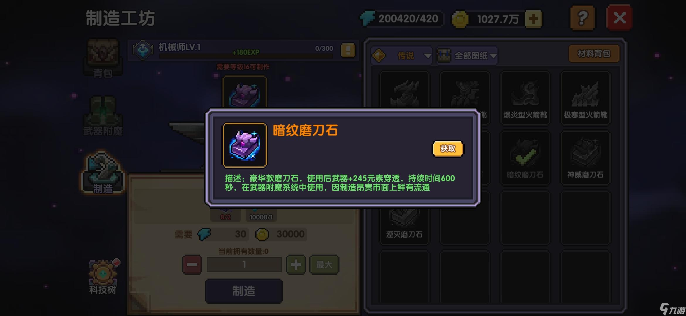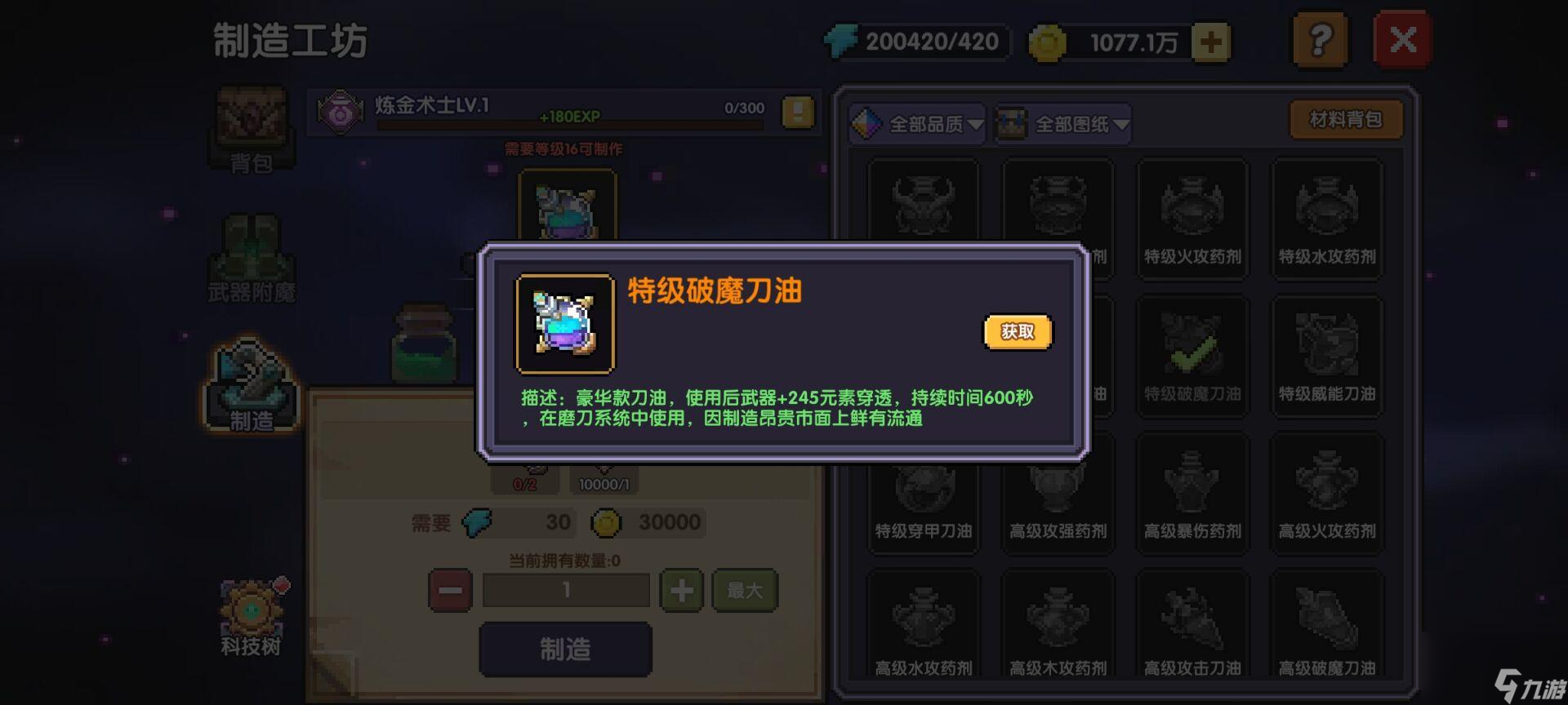 (二)刀油和磨刀石可以用于武器附魔功能,可以增加一些属性,但效果有时间限制。