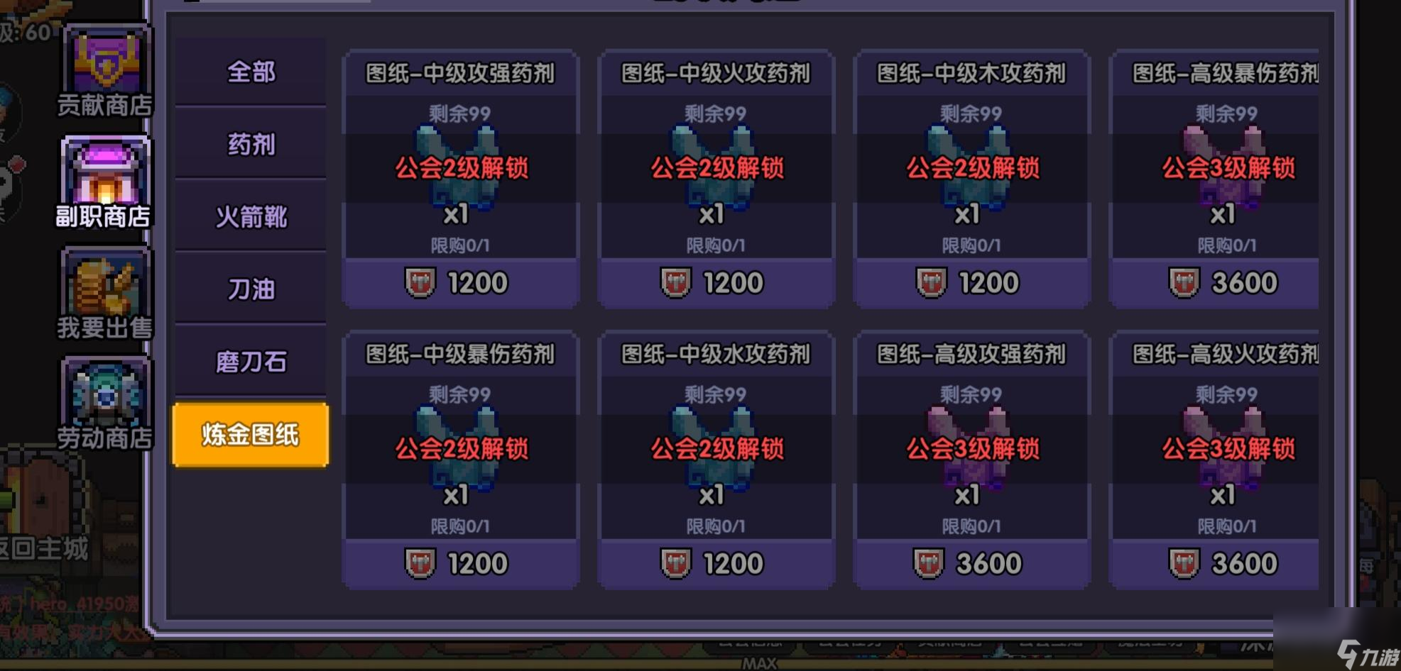 此外,商店也受公会等级的限制,4级以下的公会将受到购买限制