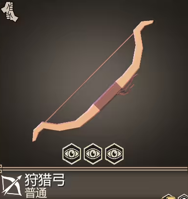 第一把弓箭叫做狩猎弓,这弓箭拥有6点物理伤害加成和射击狙击两个攻击技能,还拥有3的闪避属性加成和对空中单位造成15%额外伤害的效果;
