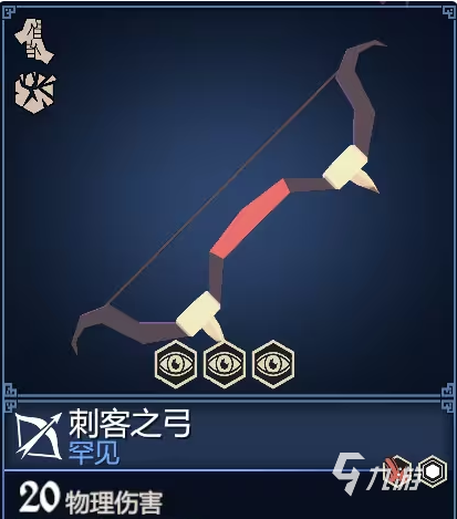 第四个玻璃弓,这是品质为稀有的弓箭,基础物理伤害就有20,晶化之箭,闪避值直接加5。第五个普通强盗弓,不仅可以射击,还能进行挥砍,提升25%对飞行目标的伤害。第五个是罕见的刺客之弓,基础伤害20,射击非常稳固,提升15%暴击,外加20%对人形造成的伤害。
